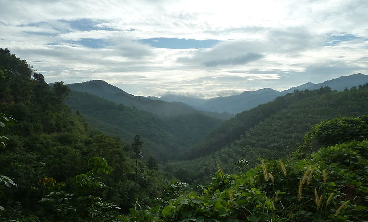 Bis zur Küste sind es 80 KM hubbelige Überlandstrasse. Das schaffen wir mit unseren Durchschnittlich max. 34 KM/h nicht mehr vor Einbruch der Dunkelheit. Versuchen wir zumindest, so weit wie möglich aus der möglichen Regenzone weg zu kommen. Doch es beginnt schon nach 12 Km zu Regnen. Wir geben vollgas. Doch es hat keinen Sinn; Viel zu Gefährlich - so schnell wie die Roller es zulassen auf dieser mit Schlaglöcher versehenen Strasse zu rasen, und das Leben zu riskieren.
