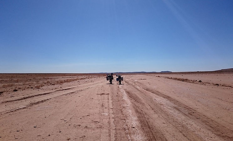 Diese Piste kürzt die N19 / R604 sogar um ca. 20 km ab. Nur berücksichtigen wir bei der Fuel Berechnung „noch“ nicht, dass der Verbrauch der Motorräder auf Piste grösser ist als auf Asphaltstrasse. Nur zur Info: Beim Fahren im Sand muss man mit dem doppelten Verbrauch rechnen. Klar, wissen wir das, nur berücksichtigen wir es in unserem Übermut nicht. Und von wo sollen wir ahnen, was uns diese Piste noch bietet. Wir können die die Schwierigkeiten und Tücken der Wüste schlicht nicht erahnen.
