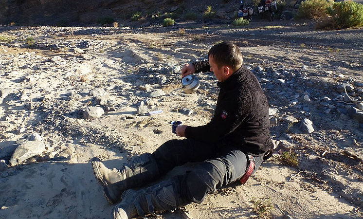 Am Fluss, mit der Sonne im Rücken geniessen wir den süssen Tee.