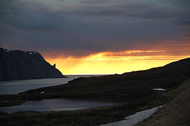 Langsam zieht über dem Meer ein kleines Unwetter auf. Nebelschwaden und Regengüsse bieten uns ein weiteres, einmaliges Schauspiel. Kurz glauben wir, eine Aurora Boralis zu sehen, aber wahrscheinlich ist es „nur“ regen, welcher in der Mitternachtssonne tanzt.