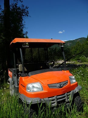 Alle Kanister waren leer. Wir mussten, damit wir weiterarbeiten konnten, ins Dorflädeli (General Store) nach Edgewood. Wir nahmen für die Fahrt den Kubota. Die leeren Blechkanister hinten auf die Ladefläche und schon tuckerten wir los.