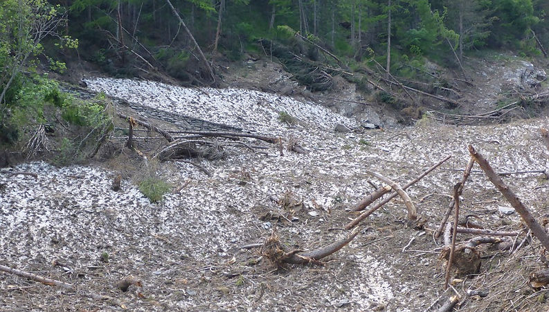 Auf den ersten Blick sieht es wieder nach Bäumen aus, aber dann wird uns schnell klar, dass hier eine Lawine die Zerstörung angerichtet hat.